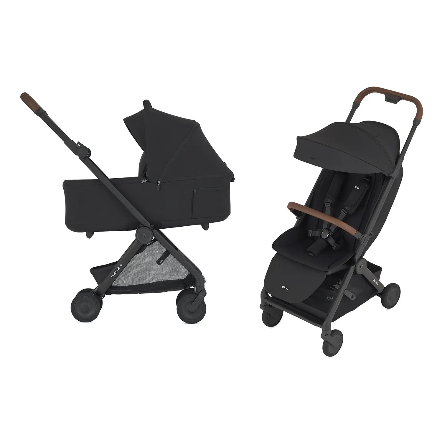 Для ещё большей универсальности Air-Q можно дополнить люлькой для новорождённых размера ручной клади, люлькой для питомца размера ручной клади или автокреслом. Все элементы легко сочетаются между собой — чтобы путешествовать просто и без лишних забот.